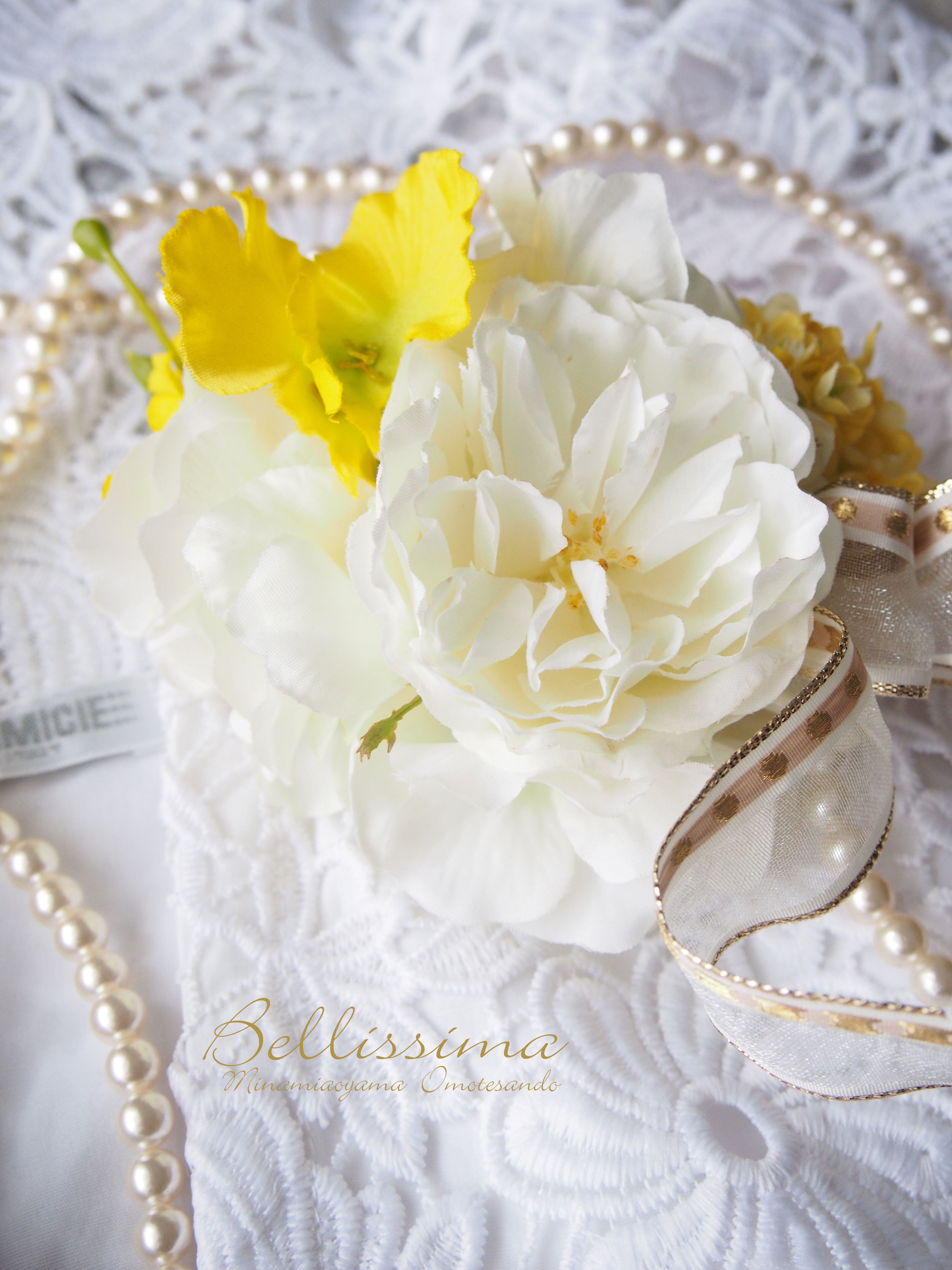 最高級のアーティフィシャルフラワーを使用しておりますので末永くお楽しみいただけます。お花の配置やデザインにこだわり、一点ものならではの特別感がある作品に仕上げました。