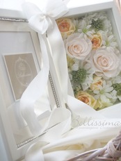 フォトフレームはお写真がメインとなる事やお花同士の色移りを防ぐためにアレンジは優しいお色を使用してアレンジ、生花のようなしなやかさと温かみを感じる最高級の花材を使用しております